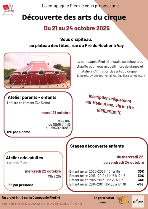 En octobre, la compagnie Pied’né reste sur place et installe son chapiteau chauffé au plateau des fêtes à Vay.